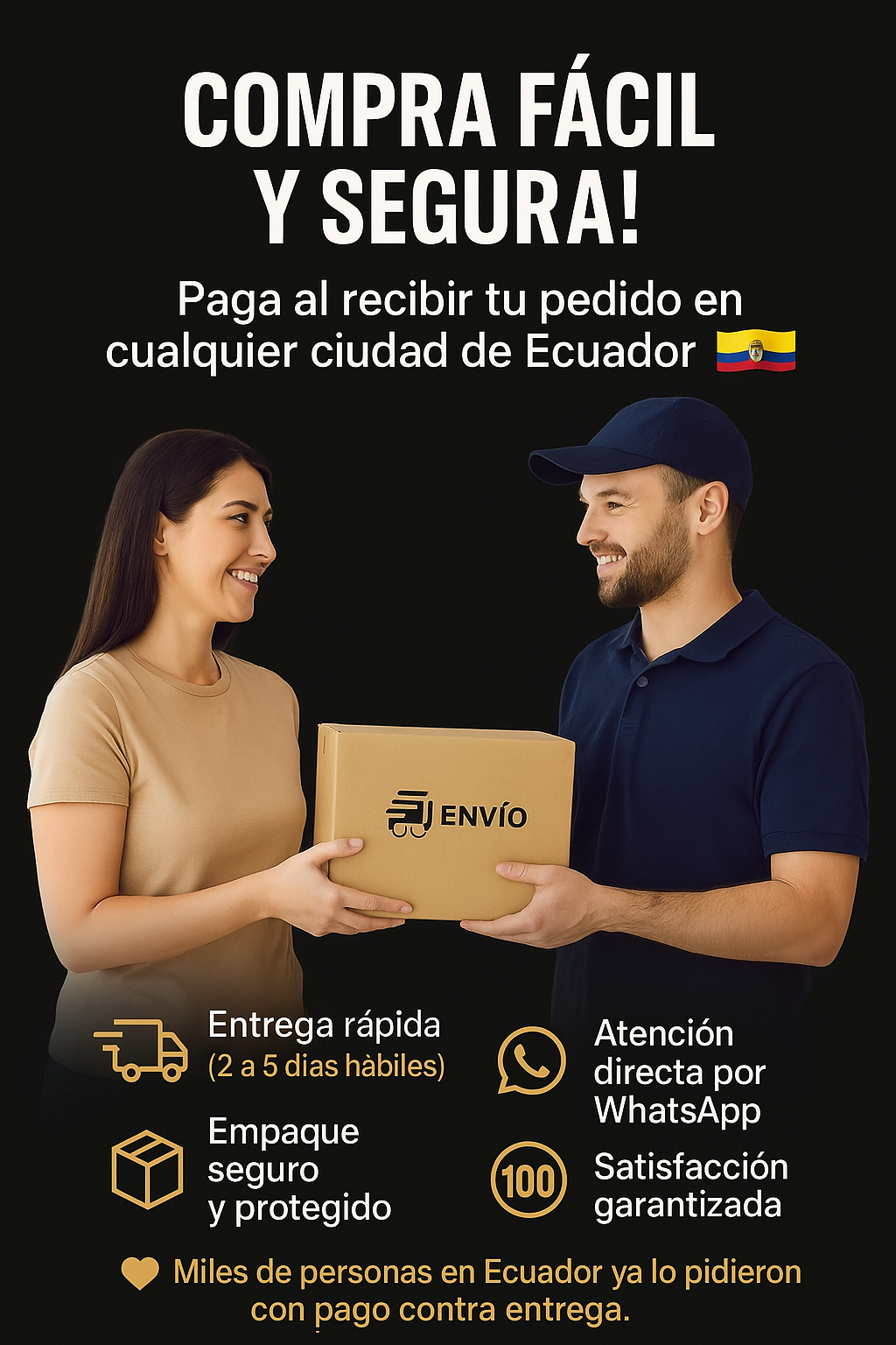 Hacemos envíos a todo el país, incluyendo ciudades principales como Quito, Guayaquil, Cuenca, Ambato, Manta, Portoviejo y más.